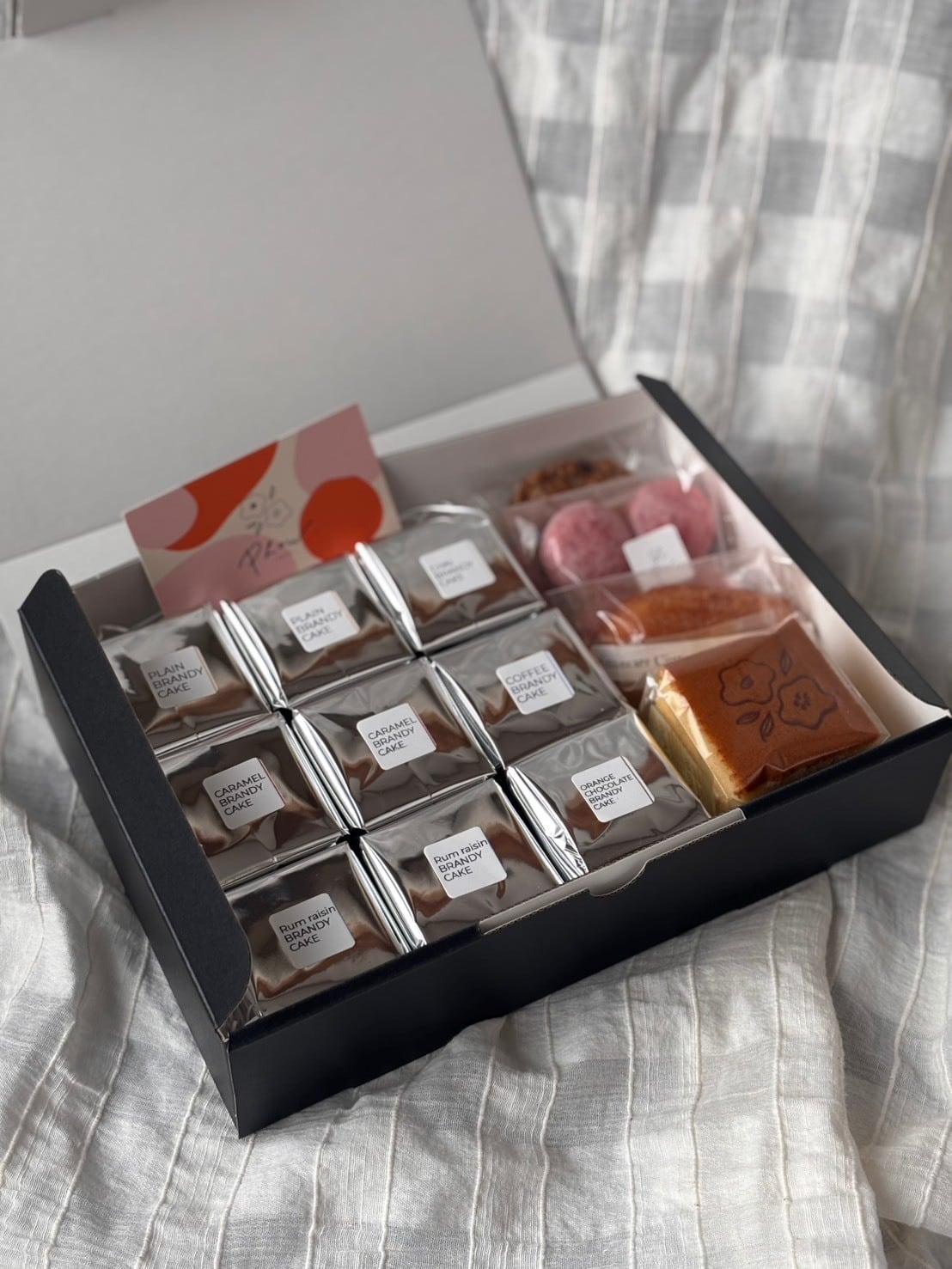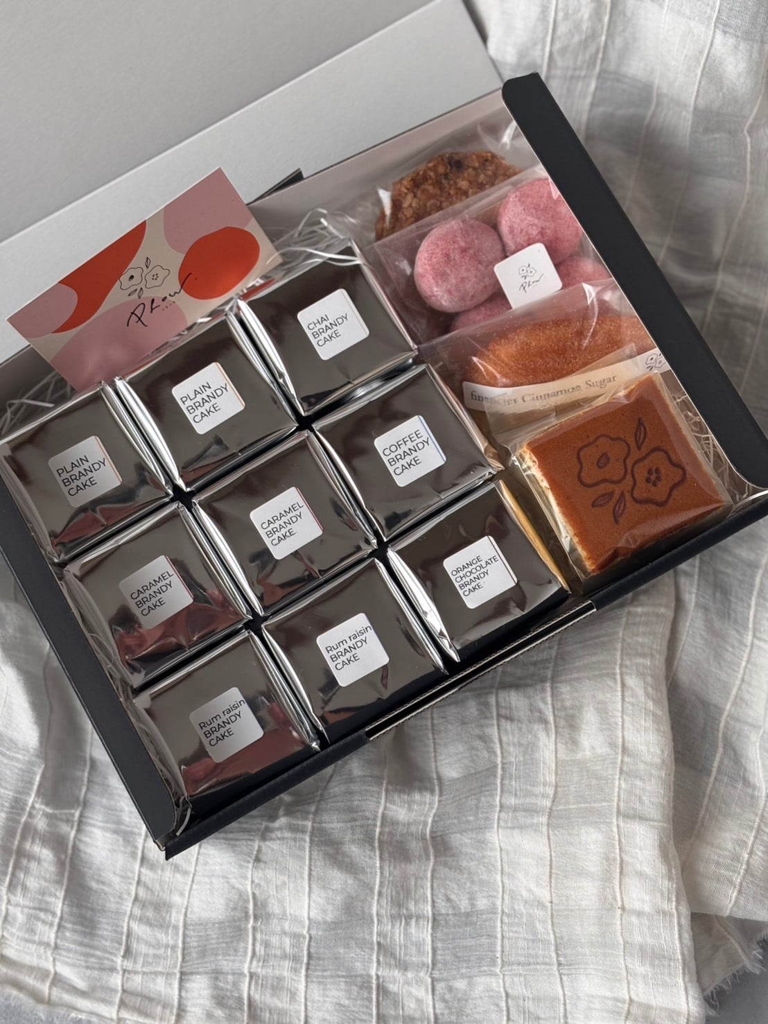 ・ブランデーケーキは洋酒を使用しております。お子様やお車を運転される方やその他、アルコールにより支障をきたす可能性のある方はご注意ください。